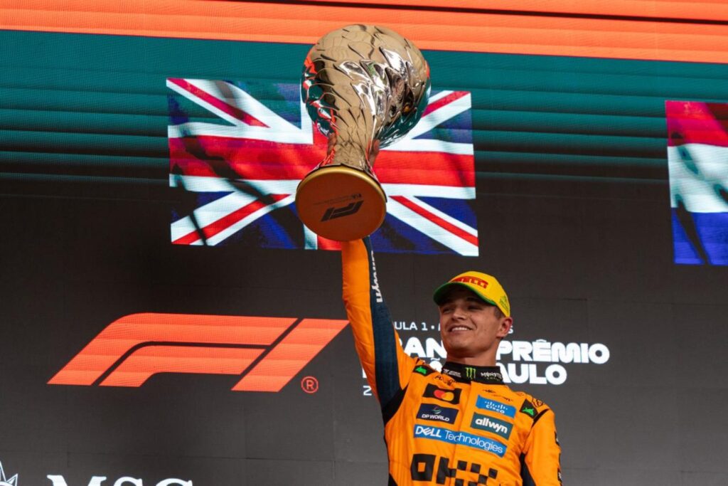“Foi para um dos meus mentores, Gil (de Ferran). Um fim de semana perfeito”, disse Norris, bastante emocionado “Foi uma corrida maluca! É muito bom vencer aqui no Brasil. É uma pista incrível, com fãs incríveis”, afirmou o britânico, que havia vencido a Sprint de Interlagos em 2024.