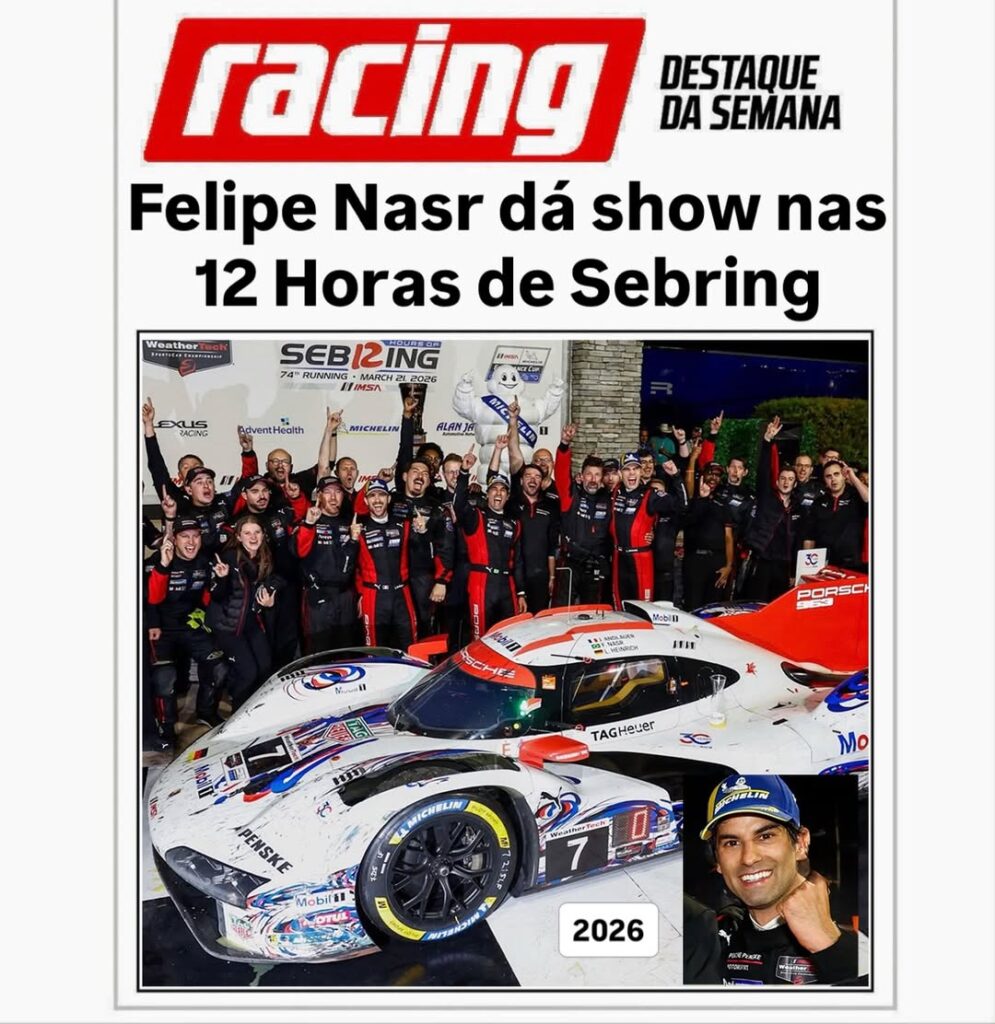 Após conquistar as 24 Horas de Daytona em janeiro, Felipe Nasr e a Porsche repetiram o feito com uma vitória na corrida 12 Horas de Sebring 2026. Foi a 20ª vitória da Porsche na icônica corrida de resistência dos EUA e a 17ª dobradinha da fabricante de Stuttgart em Sebring.