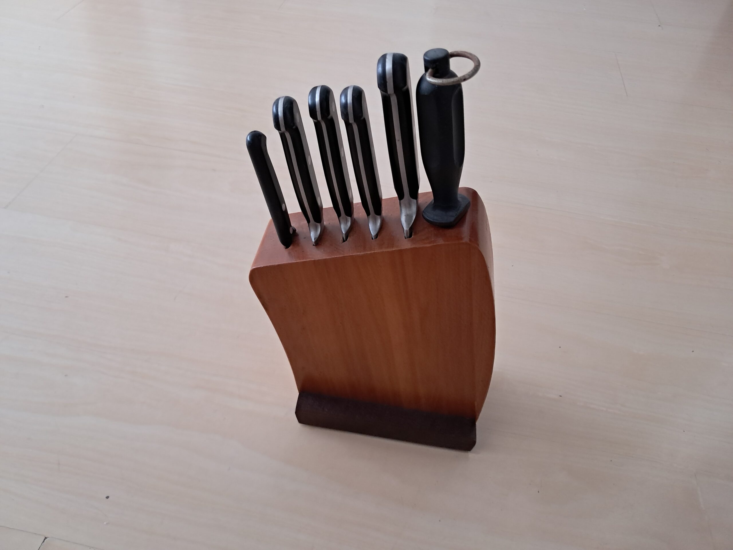 Quando abri o presente, ela ficou chocada: havia apenas um suporte de facas, da Tramontina. Agradeci e ela falou que estava errado, que esqueceram de colocar as facas no pacote.
